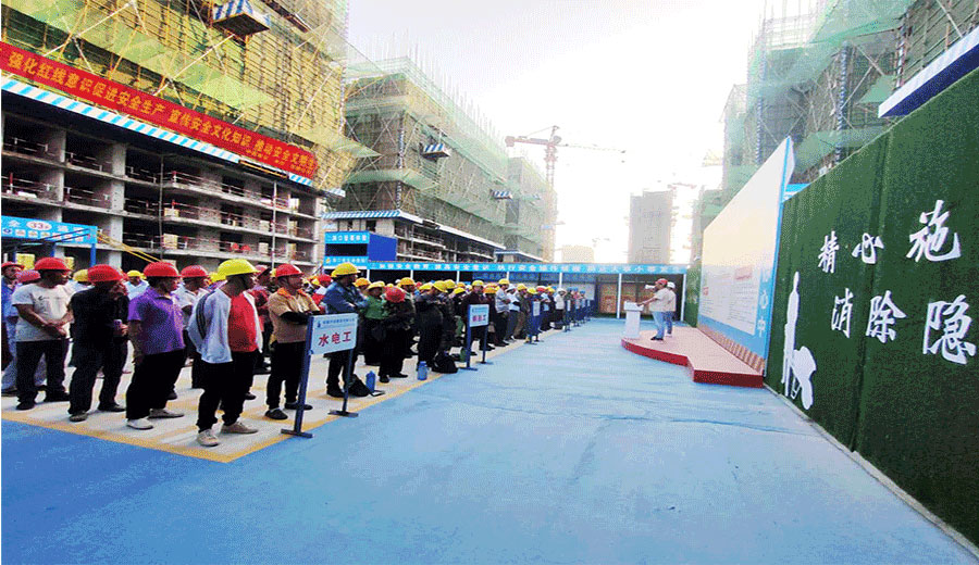 為了讓一線工人全面融入到安全管理中來,各項目部組織施工人員在安全月橫幅或展板上簽名,并在安全晨會中開展宣誓、承諾活動,力爭取得實效。