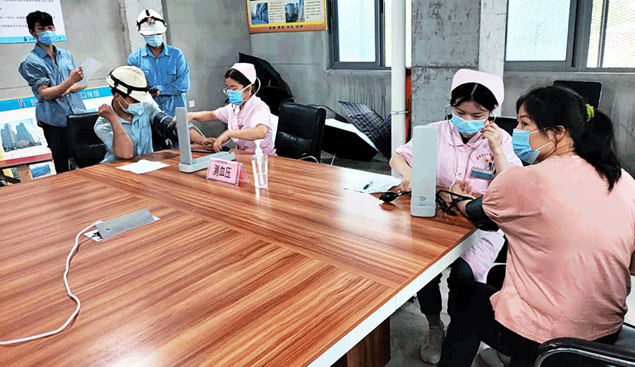 各項目部積極聯(lián)系體檢機構(gòu),為所有工友免費“送健康”,利用每日晨會或休息時間,將防暑藥品、降溫物品免費發(fā)放到工友手中。