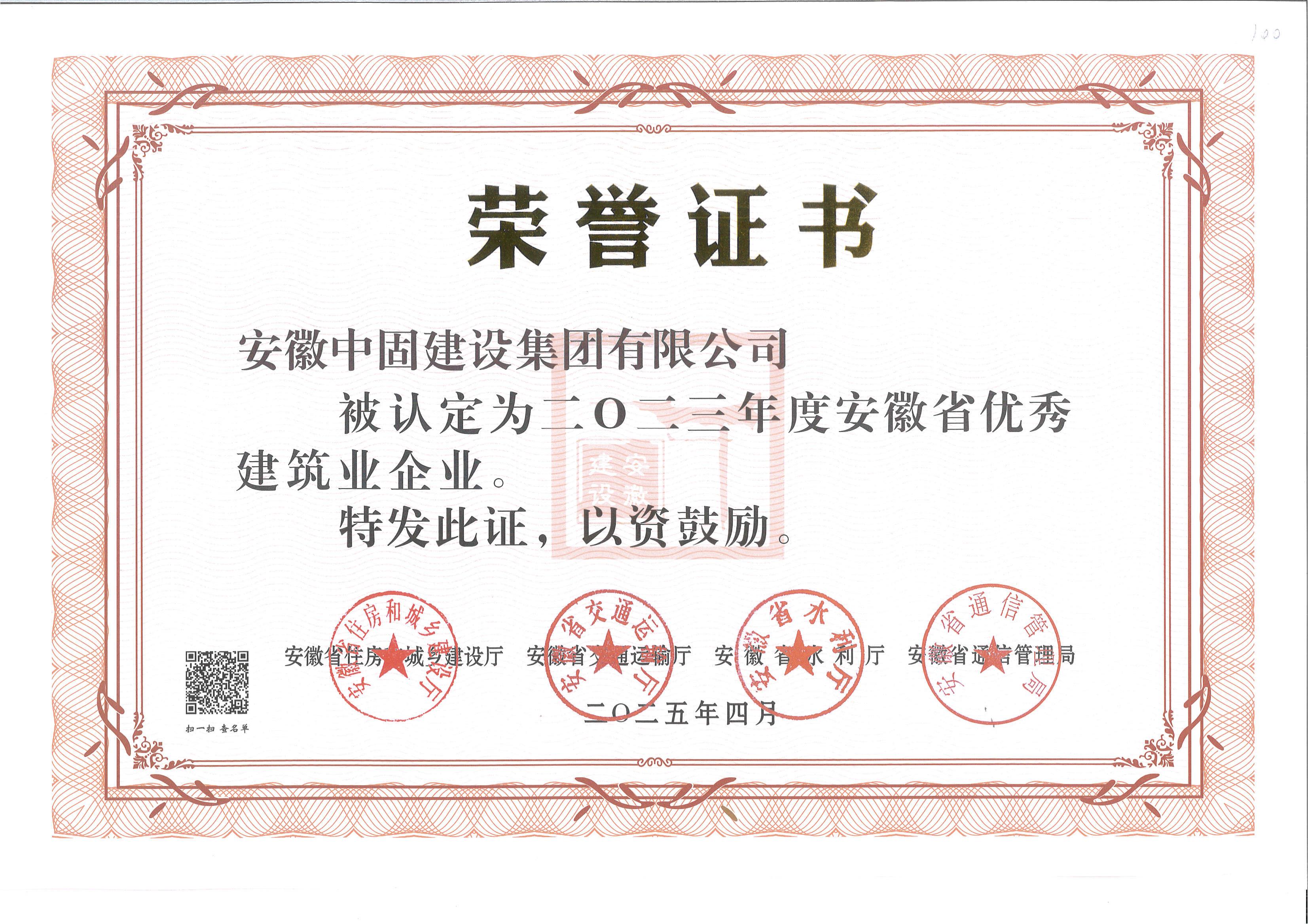 中固集團榮獲“2023年度安徽省優(yōu)秀建筑業(yè)企業(yè)”