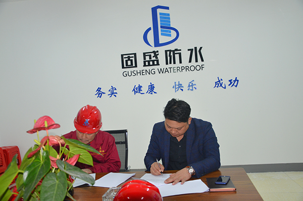 簽約儀式上,江總代表固盛防水領(lǐng)導(dǎo)班子與員工代表簽訂了勞動合同,固盛防水公司正式迎來第一批員工。江總表示,總公司十分重視此次勞動合同簽訂,此舉是在建筑產(chǎn)業(yè)工人模式上的新探索,希望固盛公司注重過程中經(jīng)驗(yàn)的收集,務(wù)實(shí)的打造屬于公司的建筑產(chǎn)業(yè)工人。