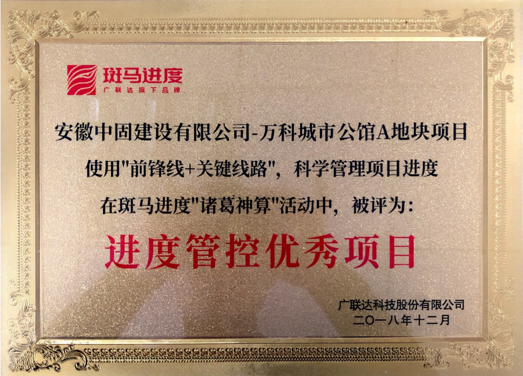 2019年1月11日,他代表公司參加廣聯(lián)達(dá)科技股份有限公司舉辦的“諸葛神算”活動(dòng),使用了“前鋒線+關(guān)鍵線路”這一應(yīng)用,為項(xiàng)目進(jìn)度糾偏提供技術(shù)支持,榮獲了“進(jìn)度管控優(yōu)秀項(xiàng)目”獎(jiǎng)。