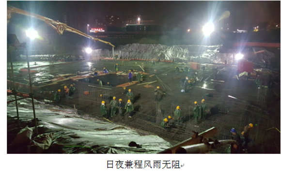 五月伊始,公司各兄弟項(xiàng)目部不斷傳來(lái)喜訊:蕪湖萬(wàn)科城、信達(dá)天御、華府五期和森林城C4均傳來(lái)捷報(bào),我信達(dá)公園里項(xiàng)目部也不甘示弱,在兄弟們?nèi)找辜娉田L(fēng)雨無(wú)阻的拼搏下,終于于2016年5月30日完成售樓部結(jié)構(gòu)封頂任務(wù),圓滿完成合同節(jié)點(diǎn)工期。信達(dá).公園里項(xiàng)目S12#樓(售樓部)土建工程施工項(xiàng)目位于合肥市濱湖新區(qū)杭州路與廬州大道交口,總建筑面積4248.30平方米,占地面積約1900平方米,建筑高度度15.35米。結(jié)構(gòu)類(lèi)型為現(xiàn)澆框架結(jié)構(gòu),地下1層為下沉庭院、商業(yè),負(fù)一層層高4.5米,地上3層為商業(yè),一層層高5.6米,二層層高4.8米,三層層高4.5米。信達(dá).公園里項(xiàng)目S12#樓(售樓部)項(xiàng)目部,開(kāi)工日期2016年4月15日,結(jié)構(gòu)封頂工期45天。該工程業(yè)態(tài)豐富,結(jié)構(gòu)形式復(fù)雜,且?guī)в幸粚拥叵率遥畹蛯痈?.5米,局部為高支模,且為汽車(chē)吊作業(yè);在工程施工階段,恰逢合肥陰雨天氣,45天的工期里下了十幾天的雨,且在施工過(guò)程中設(shè)計(jì)圖紙不斷的進(jìn)行變更,在如此艱難的客觀條件下,項(xiàng)目部兄弟無(wú)畏艱難,齊心協(xié)力,通過(guò)增加班組的人力和物力投入,日夜兼程、風(fēng)雨無(wú)阻,終于克服的一切困難,圓滿的完成任務(wù),給業(yè)主交出了一份滿意的答卷。